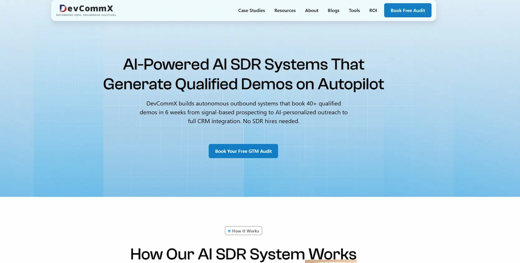 - Differentiator: 18-hour deployment timeline. Full system ownership and handover — no platform lock-in. Clients typically see 20–40 qualified demos per month within 6–8 weeks.