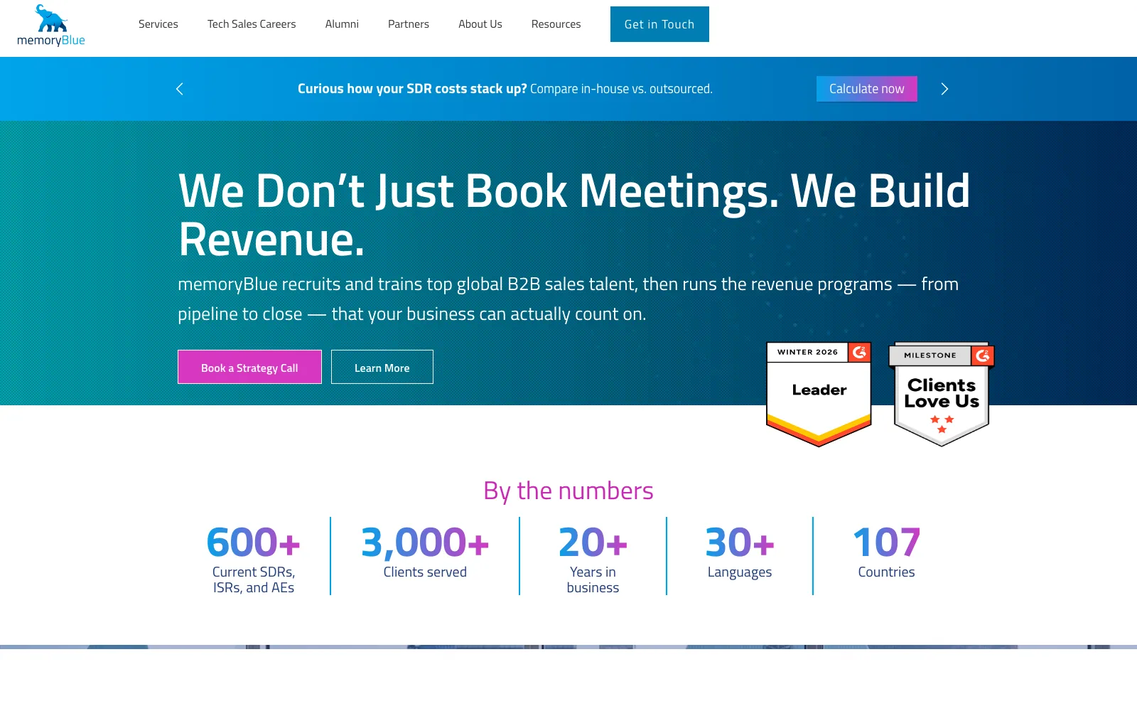 - Differentiator: Positions itself as a three-part ecosystem (managed service + Talent Cloud + graph8 platform) rather than a single agency. Month-to-month flexibility with at-cost SDR pricing — clients hire SDRs directly through Talent Cloud with no markup.
