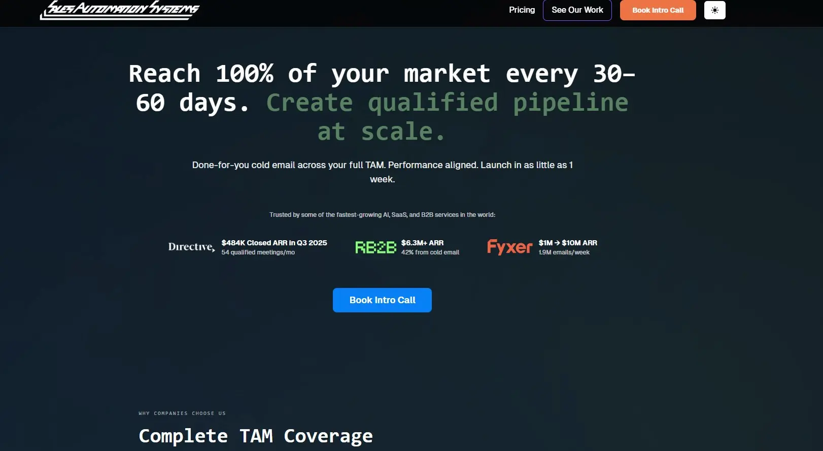 Sales Automation Systems sits at the high-volume end of the cold email spectrum, and they’re transparent about that. If you’re running a SaaS with a $50–$200/month price point where you genuinely need to talk to thousands of prospects to find a few buyers, this is closer to the right tool than ColdIQ’s hand-tuned Clay enrichment.