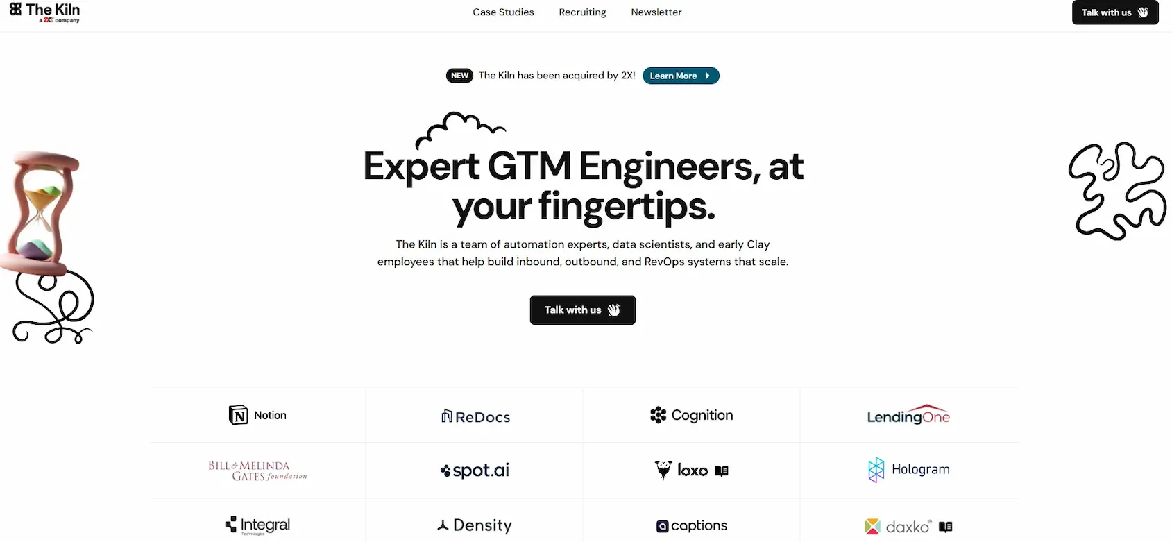 The Kiln is an explicitly senior-engineering-heavy agency, which means the deliverable looks more like custom integrations and bespoke automations than a templated playbook. That’s the right shop if your buyer is a CTO or platform engineer who will smell a templated sequence in the first line.
